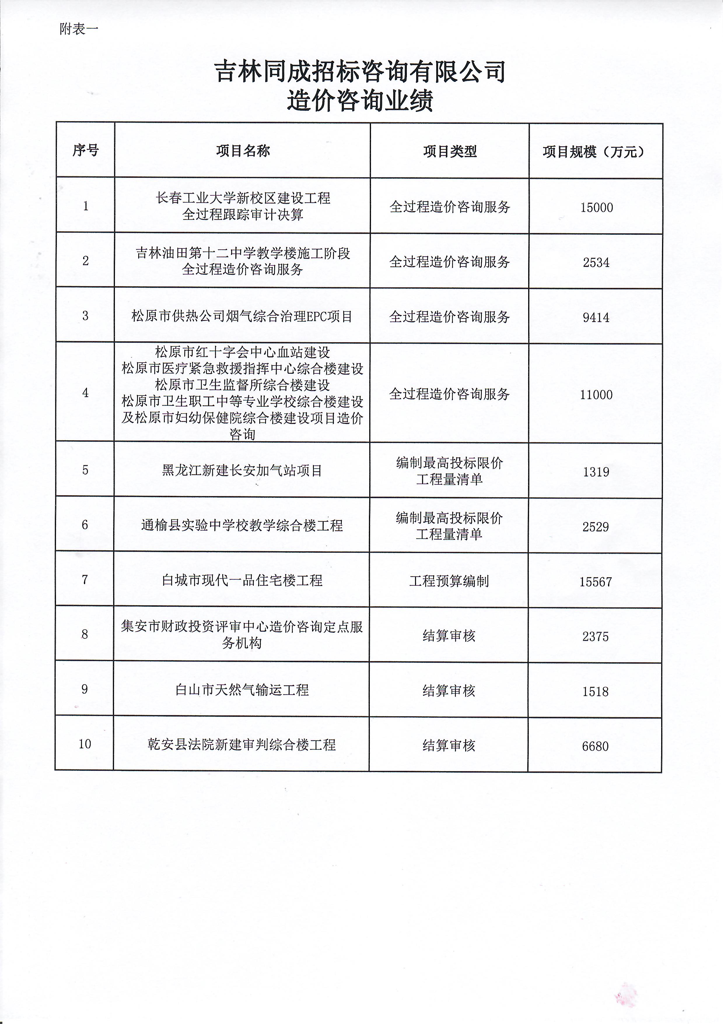 工程建設(shè)項(xiàng)目咨詢業(yè)績